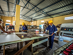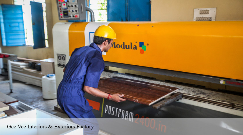 Our manufacturing facility is located at Thirumudivakkam Chennai, which is a big industrial hub. We have all the finest quality ,machineries for Modular Kitchen, Modular Wardrobe, False Ceiling, CNC Designing Work, Job Work, Post Forming, 2 MM Edge Band Tape Fixing . we assure quality work and speedy delivery through our sufficient man power and skill.